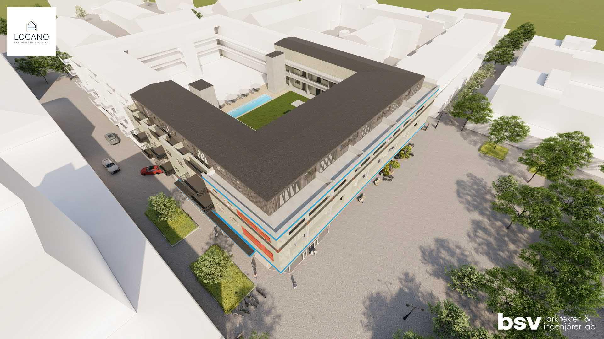 Det här är ett projekt med flera unika kvaliteter, inte minst den gemensamma poolen på innergården på plan två, som redan väckt stort intresse hos spekulanter, säger Ola Hansson från Locano Nr 2 AB.