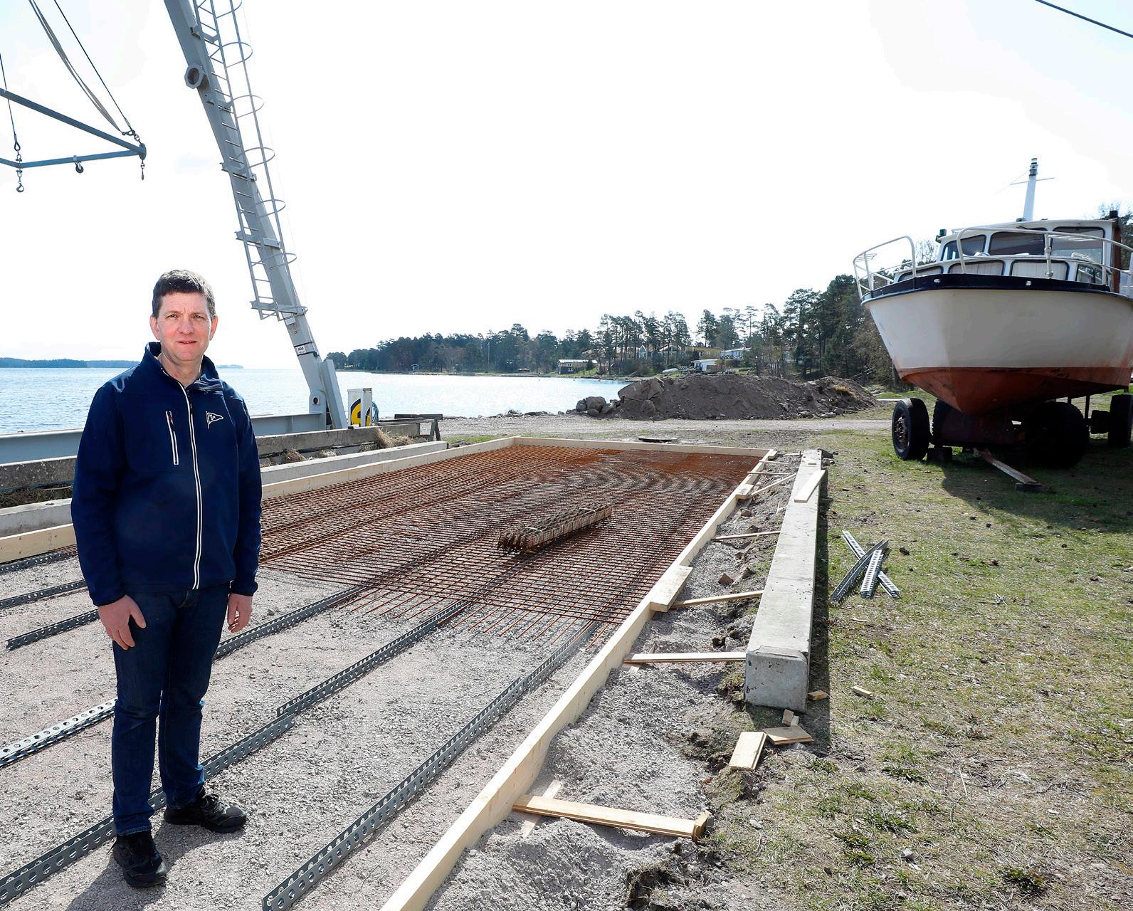 Närhet till både ramp och kran. Mönsterås Segelklubbs ordförande Peter Johansson betonar att det ska vara enkelt att använda den nya spolplattan både under säsong och vid höstens upptagningar.