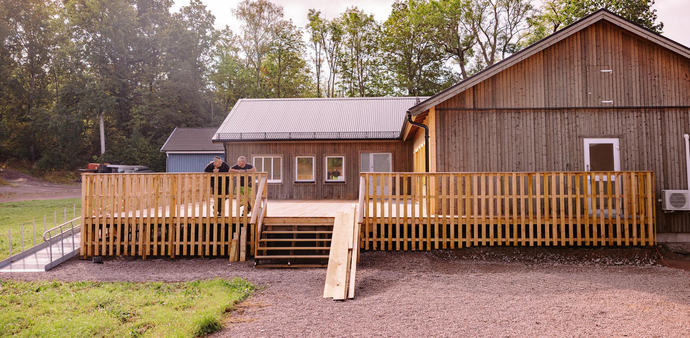 – Jag och Ingela både högg, sågade och hyvlade plankorna innan vi satte dit dem. Visst blev det fint, men jag kommer aldrig att göra om det. Nu för tiden köper jag till och med färdighuggen ved till kaminen, säger Joakim och skrattar.