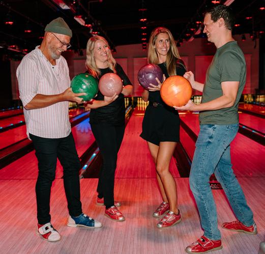 Bakom den magentafärgade fasaden i Kristinebergs centrum huserar den väletablerade reklambyrån KrePart som grundades 1986. På bilden syns en del av det färgstarka gänget på totalt 16 medarbetare.
