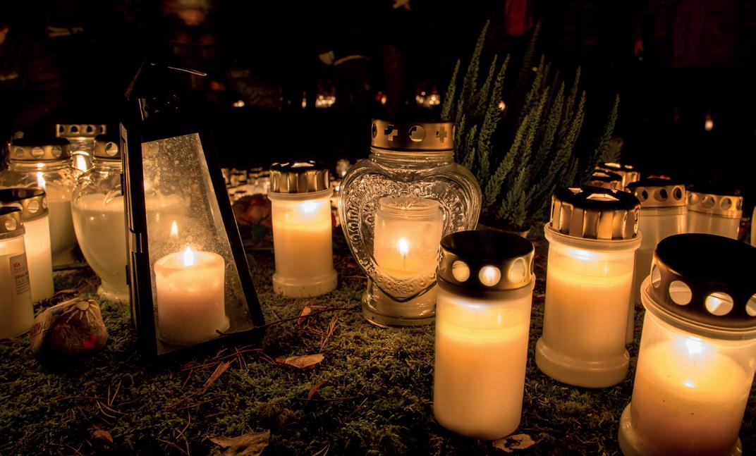 Hela vägen ned till lägerplatsen är upplyst och dit brukar det gå en strid ström av barn och vuxna.