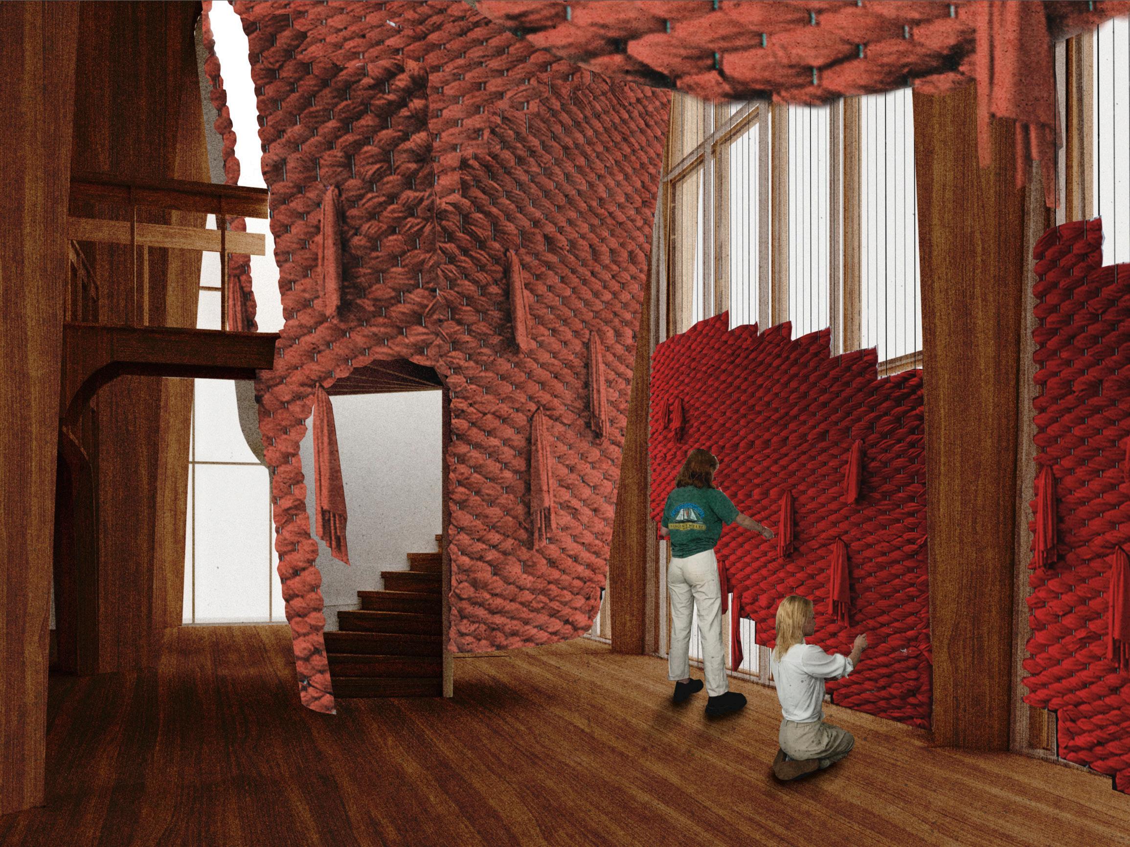 Labor Stories reevaluates the social hierarchy between the architect, construction laborers, and the intended occupants of a contemporary dance theater. The modes of material construction integrates these characters within the same labor force to project new ideas of authorship. Learning from textile weaving, this project proposes a building experience hinging on social engagement with the goal of a greater sense of empowerment within their collectively crafted spaces.