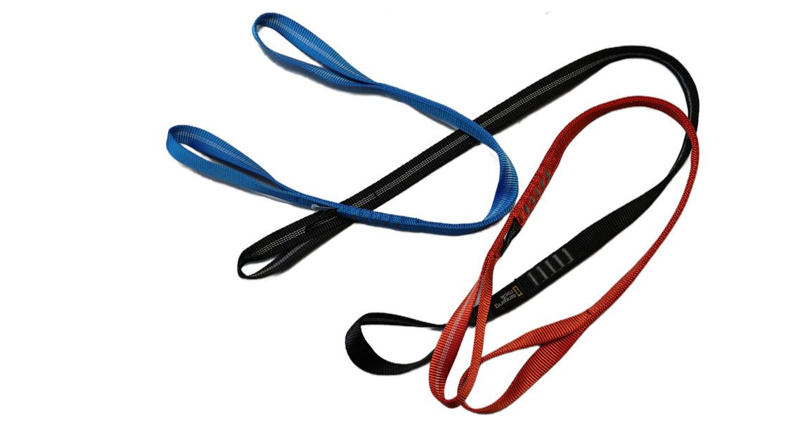 Verbindungsmittel werden als Verbindung zwischen Gurt und Selbstsicherungssystem genutzt und sind standardmäßig in Größen zwischen 70 cm und 100 cm verfügbar. Die Öffnungen sind 15 cm beiderseits verdreht vernäht und damit für den Ankerstich bestens geeignet.