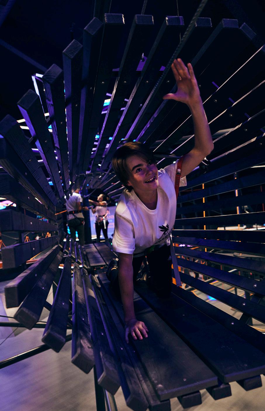 high, naturally grown climbing tree, which has bran ches on one extraordinary action climbing panels are ready to be climbed. The In all these attractions, state-of-the-art safety devices ensure that