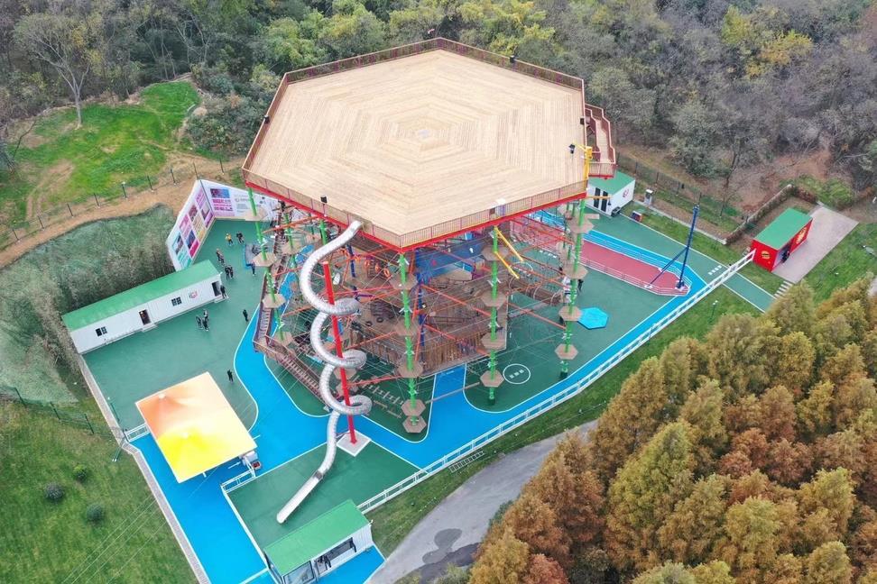 用了2个月就建成了。这座巨大的冒险高空绳索乐园是南京地区 的一大亮点,为当地社区带来了可观的收入和利益。”