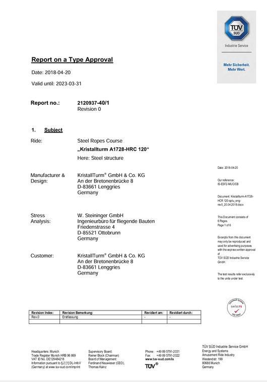 安全和服务有限公司扩展了KristallTurm®家 庭,并负责高空绳索攀爬项目的设备和供应 商、维护、检查和培训。