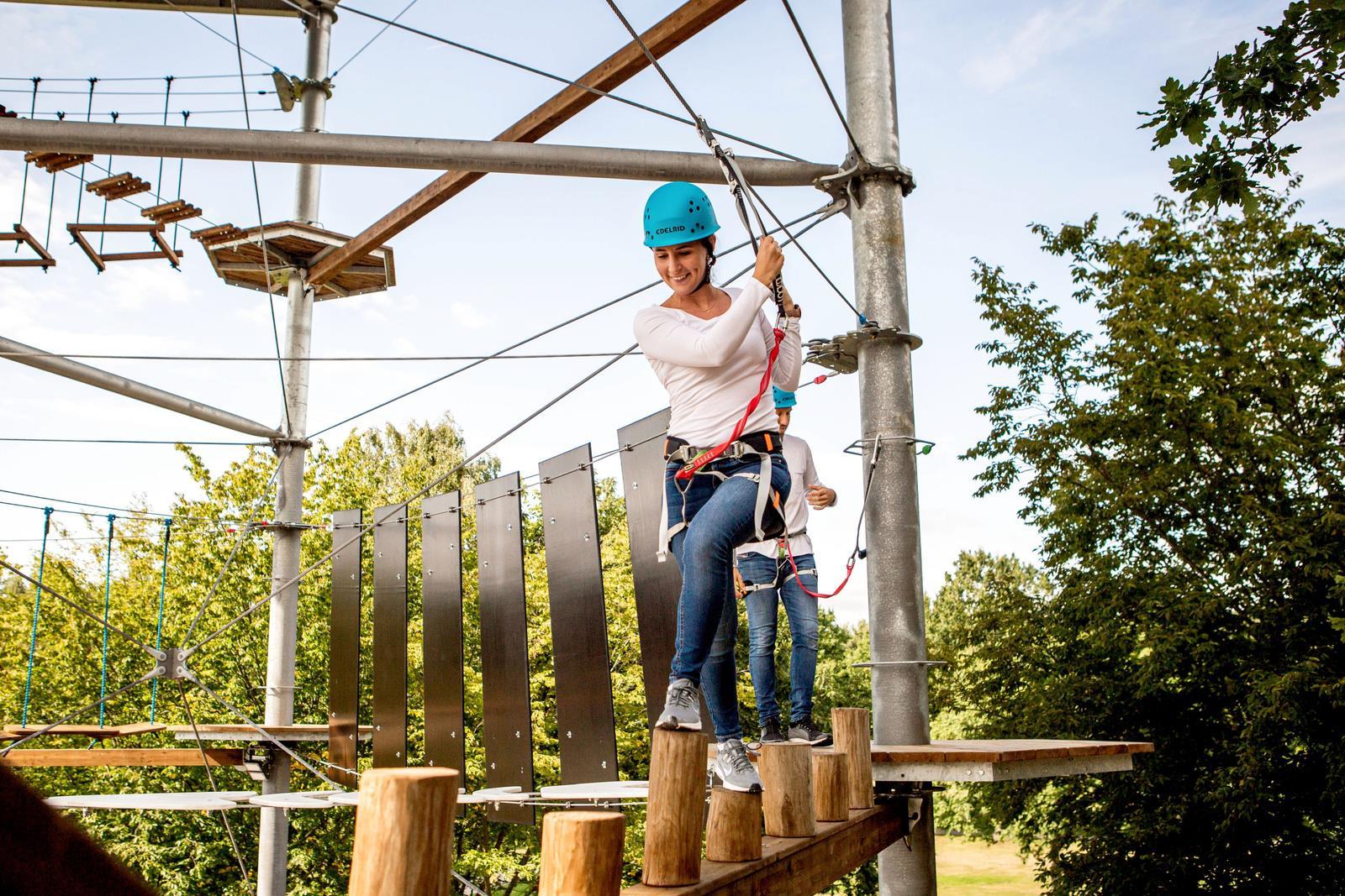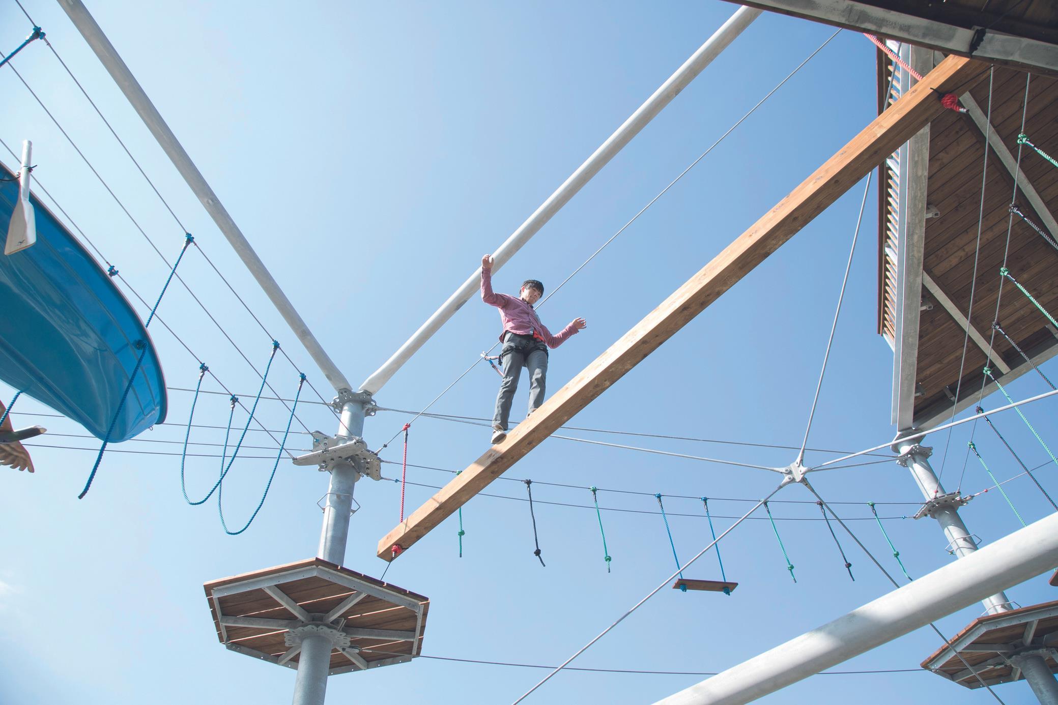 平衡动作对于高空绳索攀爬冒险至关重要。