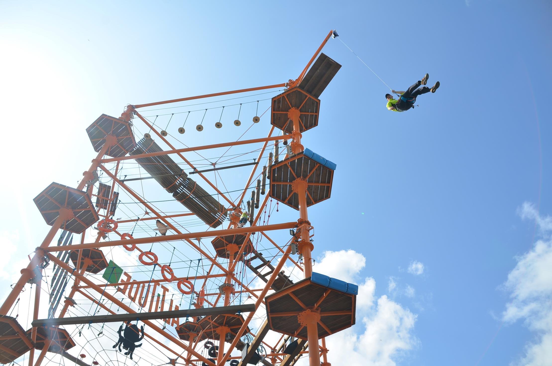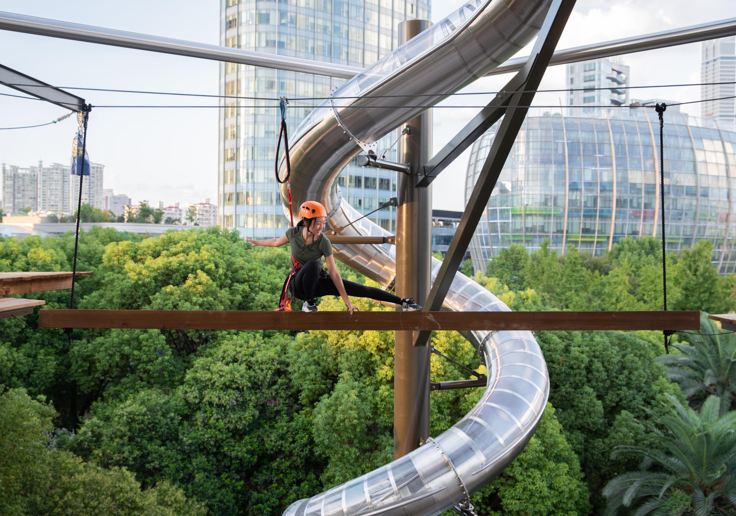 了活动平台、儿童课程、巨型秋千、滑索和管道滑梯。尽管受