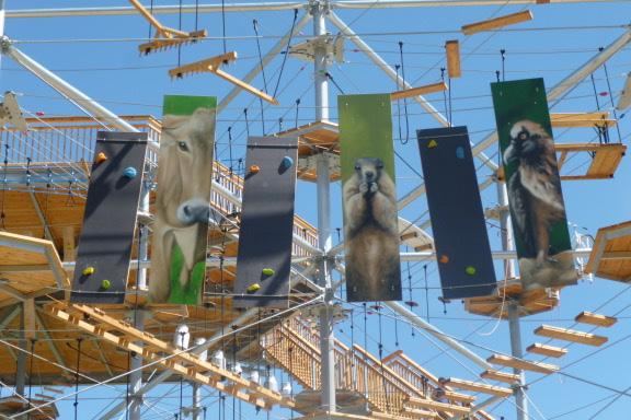 Nuestros elementos de escalada se pueden adaptar y tematizar de manera individual. Esto hace que cada Circuito de cuerdas altas sea único.