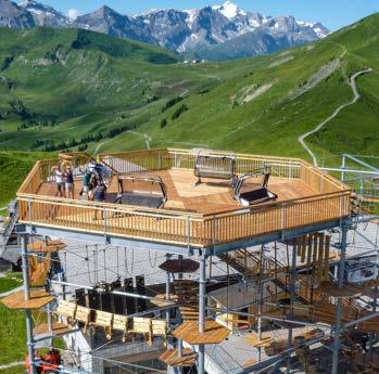 El circuito de cuerdas altas KristallTurm ® Climber se encuentra a una altitud de 1.600 m sobre el nivel del mar en Flumserberg. Es LA atracción veraniega por excelencia para diversión, emoción y acción. Este circuito de cuerdas altas cuenta con 90 elementos de escalada en 3 niveles, combinados con una plataforma para eventos, una tirolina, un rocódromo, un columpio gigante y un circuito infantil. El recorrido infantil está instalado debajo del primer nivel con 19 elementos de escalada adicionales y ofrece a los más pequeños sus primeros pasos en el mundo de la escalada.