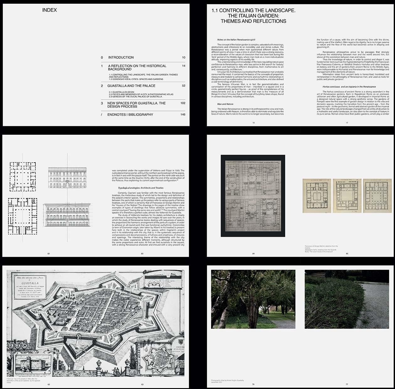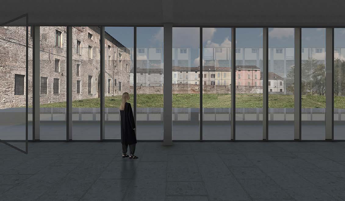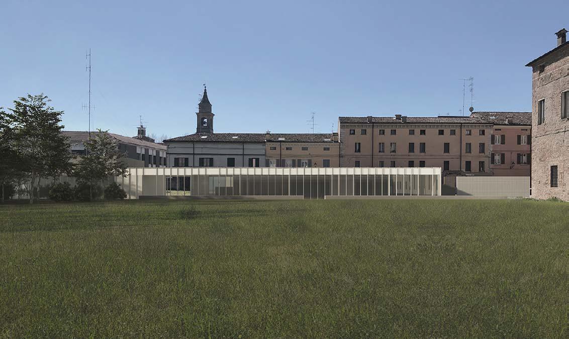 Collage of the new project in the ancient garden of Guastalla Palace.