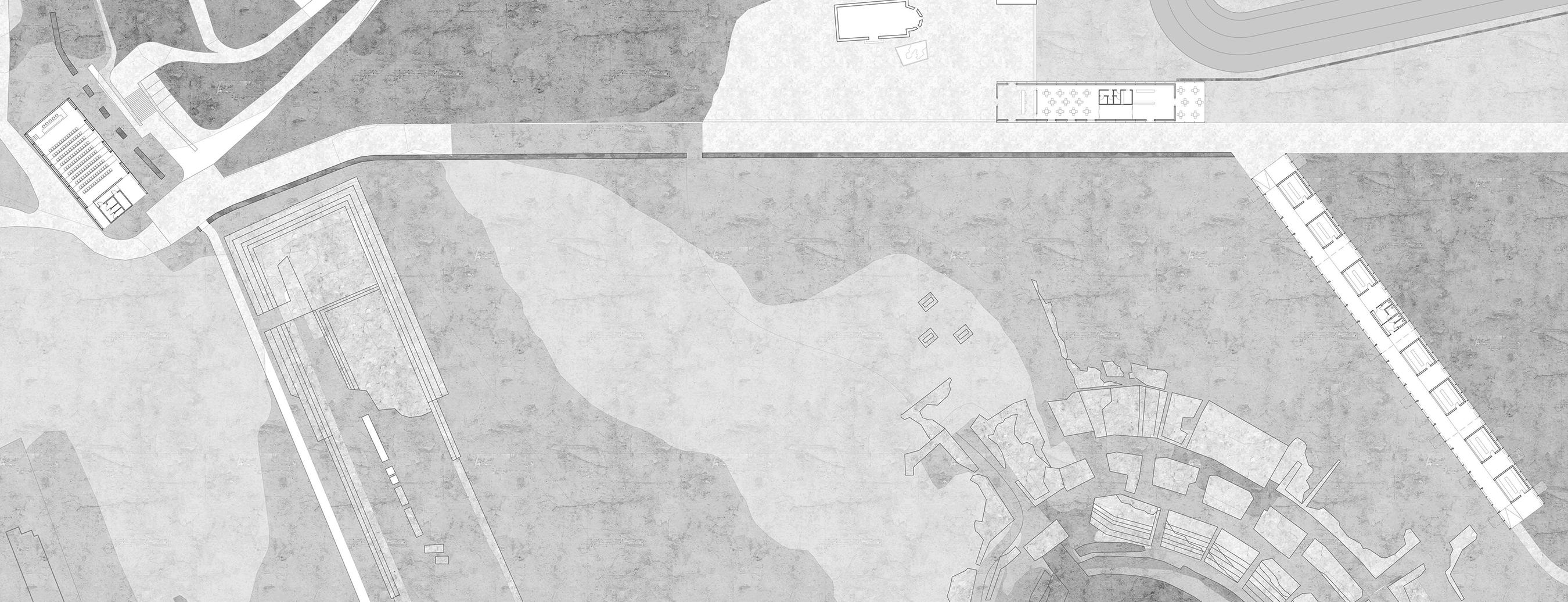 This is the urban scale model prepared for the Basel OST project in 51N4E. It investigates the possibilities of land and the new programme to give new life to the possible future quarters. A series of moments can be defined through a new sequence of landscapes on the river.