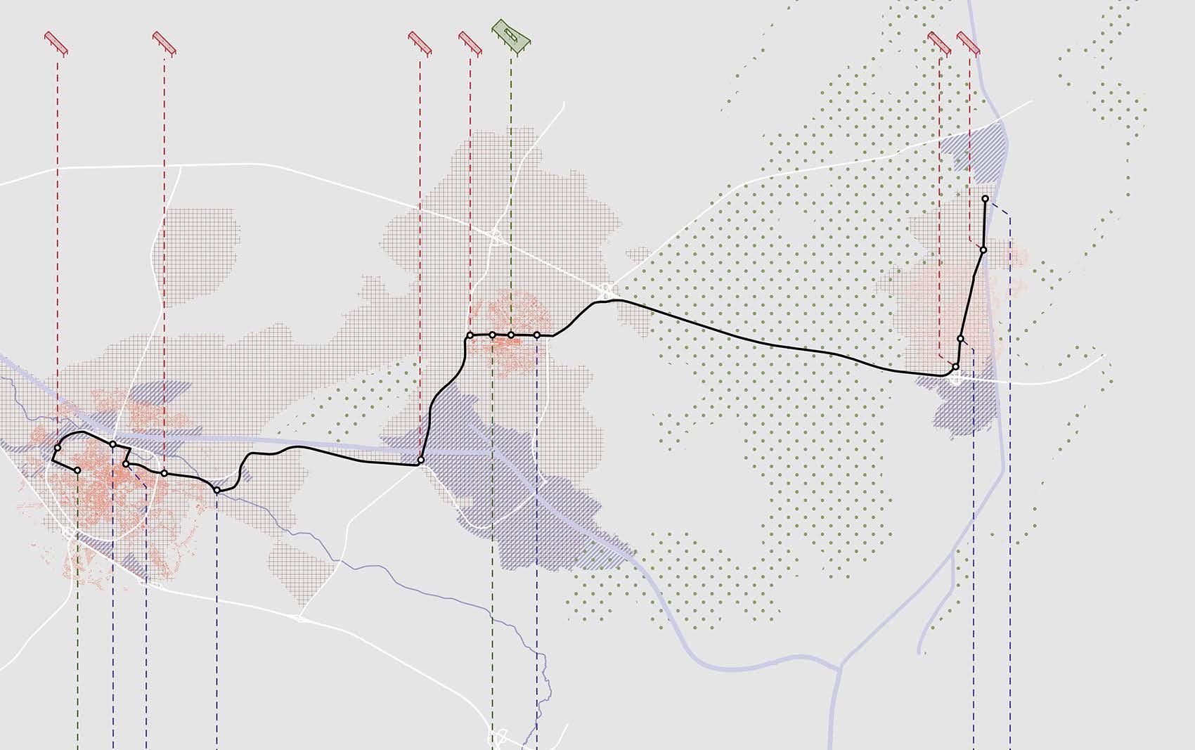 The project envisions eleven shelters as pivotal points, shaping the identity and trajectory of the transit line. It poses questions on how transit architecture can cultivate communal spaces and how to design shelters that blend comfort with diverse sitespecific functionalities, presenting a distinctive and recognizable character. Instead of advocating for a uniform architectural style replicated throughout, the project advocates for a design approach that is both systematic and adaptable to varying local contexts and needs.