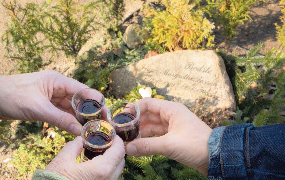 0 Familien skåler som regel et par gange ved Bedstes gravsted.