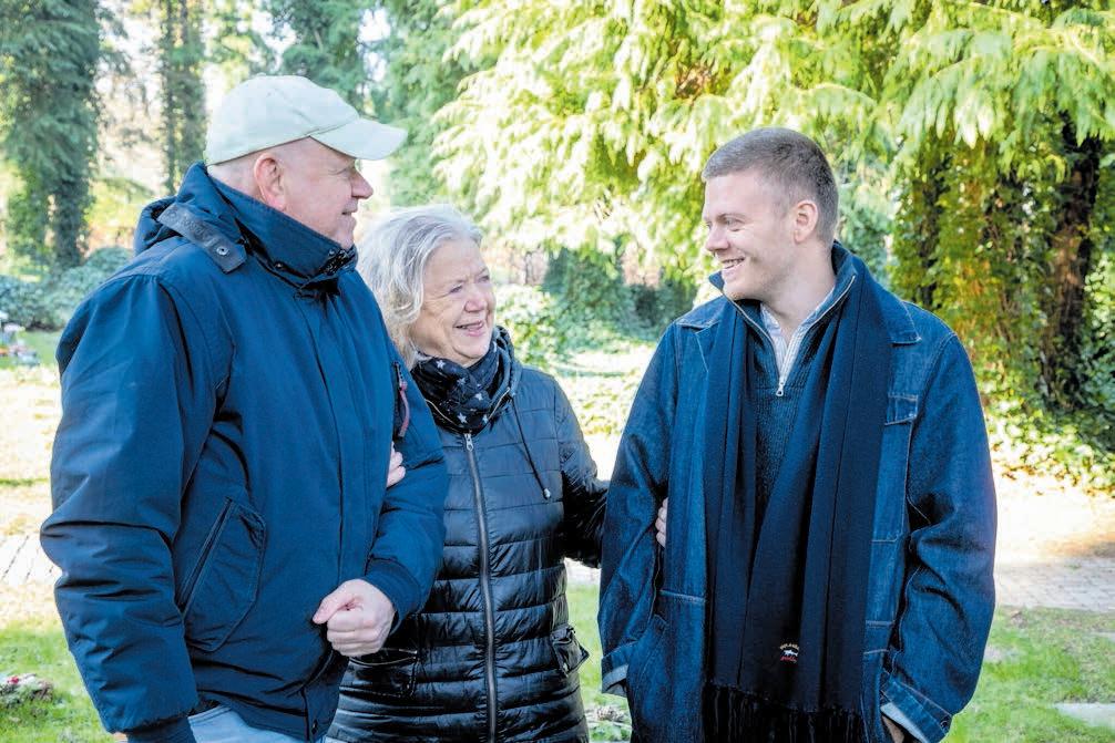 0 Morten Jakobsen står med sin mor, Karen Margrethe Jakobsen, under armen ved Mortens fars grav, mens Kristoffer