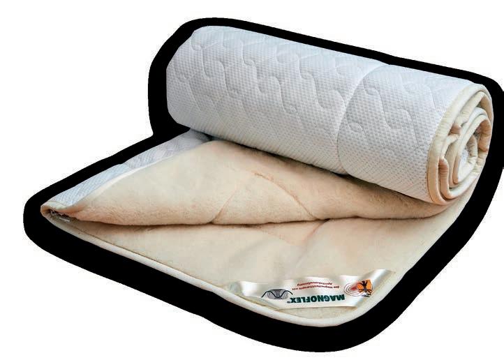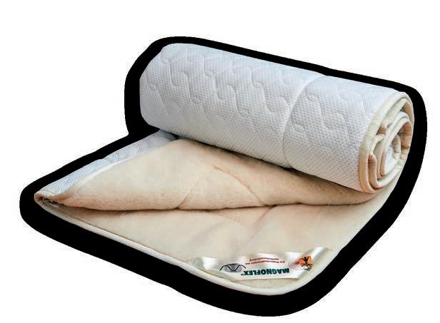 Magnocare by MAGNOFLEX magnettopmadras består den lækreste lammeuld fra Australsk merino fåreuld, ØKOtex 100 certificeret, med indvævede silketråde, viskose og polyester.