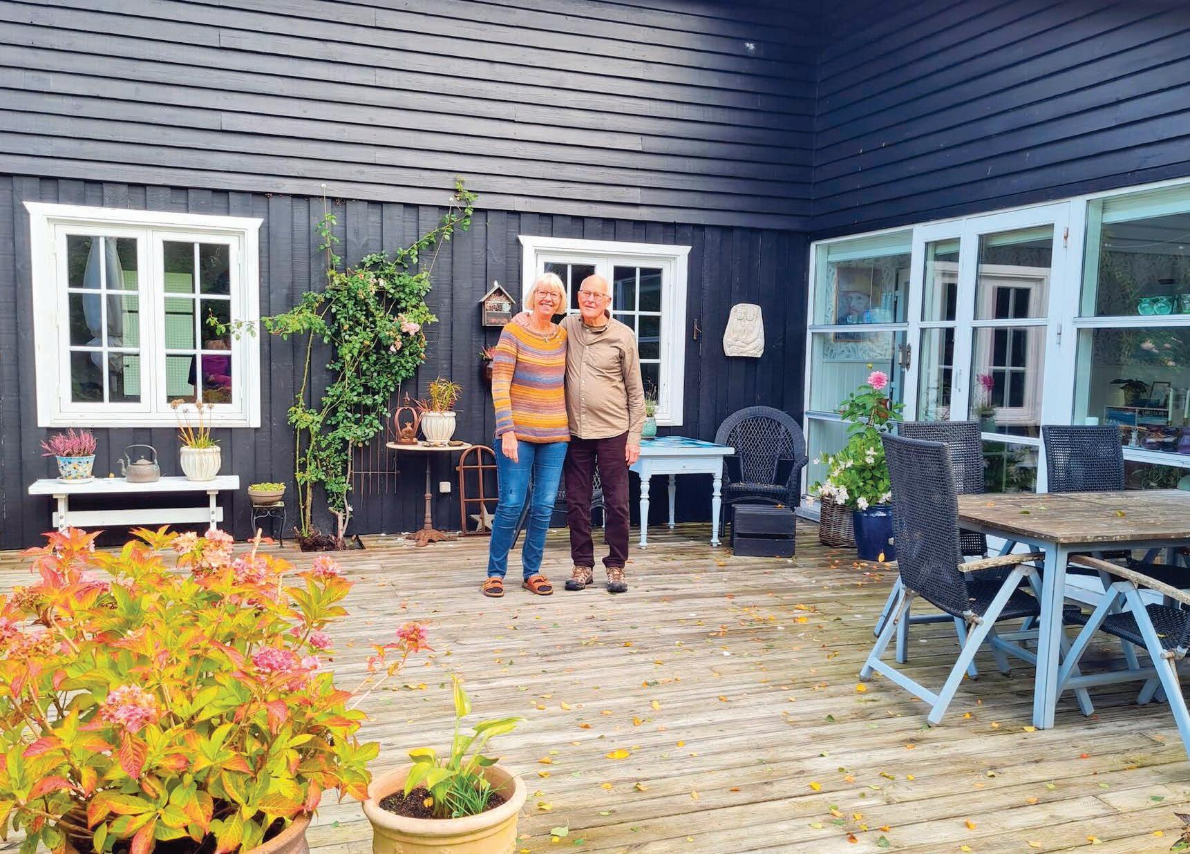 I foråret 2020 købte parret så et sommerhus tre kilometer uden for Gilleleje, hvor de nu bor hele året. Der er 1000 kvadratmeter have, naboerne er søde, og alt er i cykelafstand. De er også blevet del af en kulturgruppe, hver fredag går de til morgensang, og hun er med i en strikkeklub, læseklub, vandreklub og havegruppe.
