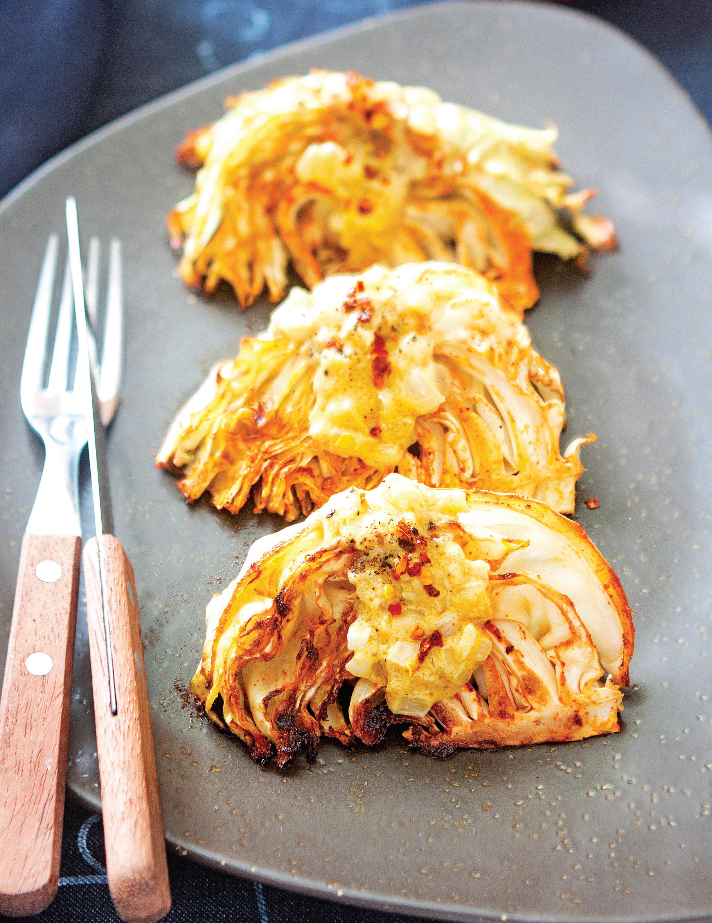НОЕМВРИ 2022 І 77 [нашето семейство] Зелката се нарязва на тънки резени – с дебелина до 2-3 см. Подреждат се в тава, застлана с хартия за печене. Под правят се със сол, червен пипер и чесън на прах. Намазват се с масло. Обръщат се и се подправят по същия начин. Пекат се в загрята на 220 градуса фурна 12 минути, обръщат се и се допичат до образуване на златиста коричка –около 10-12 минути. Междувременно лукът се нарязва на дребно и се загрява заедно с останалите съставки за соса. Поддържа се топъл и при поднасяне се гарнират готовите резени зеле. ПЕЧЕНО ЗЕЛЕ С ПИКАНТЕН СОС 1 малка зелка 1 с.л. разтопено масло морска сол чесън на прах сладък червен пипер за соса 3 с.л. масло 2 с.л. дижонска горчица малка глава кромид лук черен пипер