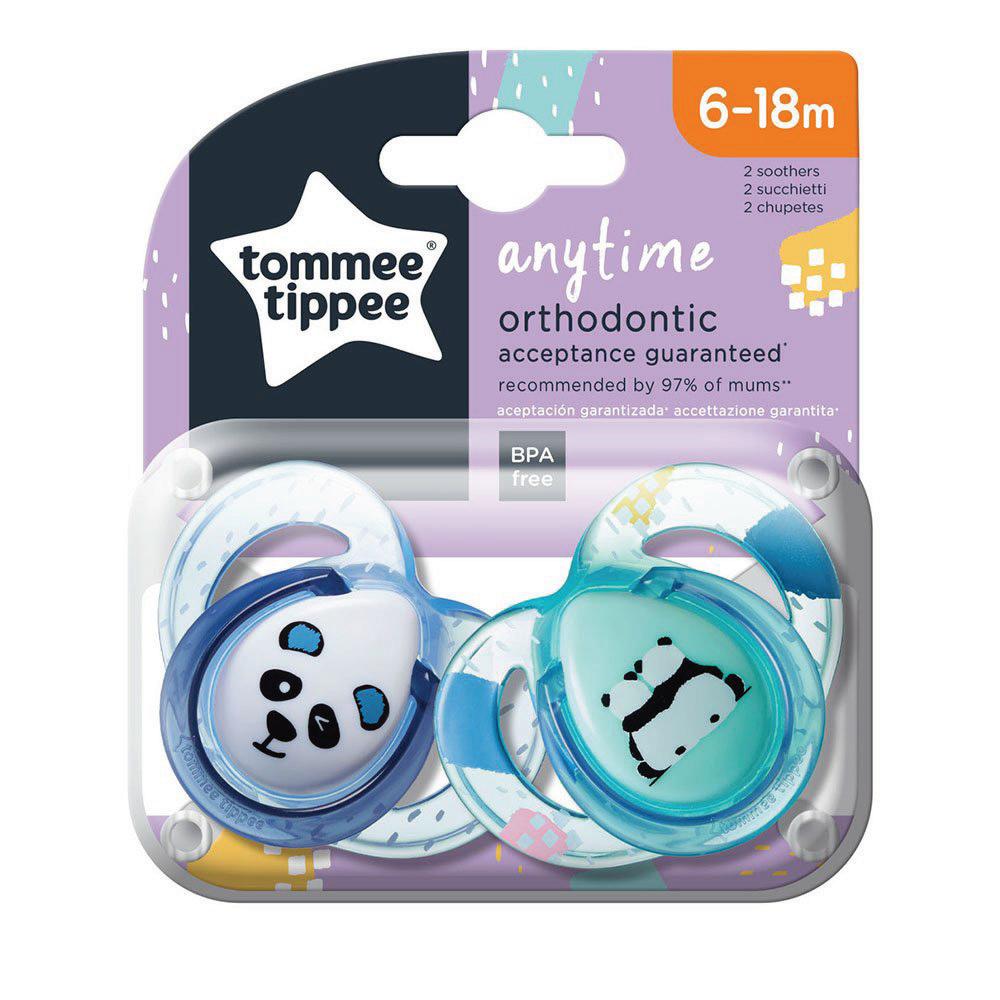 TOMMEE TIPPEE ОРТОДОНТИЧНИ ЗАЛЪГАЛКИ ANYTIME 6-18М, 2 БР./ОП., ПАНДИ (СИН/ТЮРКОАЗ)