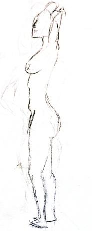Gesture drawings are quick, loose sketches used to capture the essence and movement of a figures pose. These drawings typically range from 30 seconds to 15 minutes and prioritize energy, flow, and overall form rather than detail. The focus is on working quickly, making confident marks, and getting the entire figure onto the page to reflect the model’s movement in space. This project begins with gesture drawing as the foundation for all figure studies, since even longer poses always start with a gesture. By quickly establishing the whole figure, gesture drawings provide a base for observation, analysis, and correction, serving as the building blocks for more refined and finished pieces.