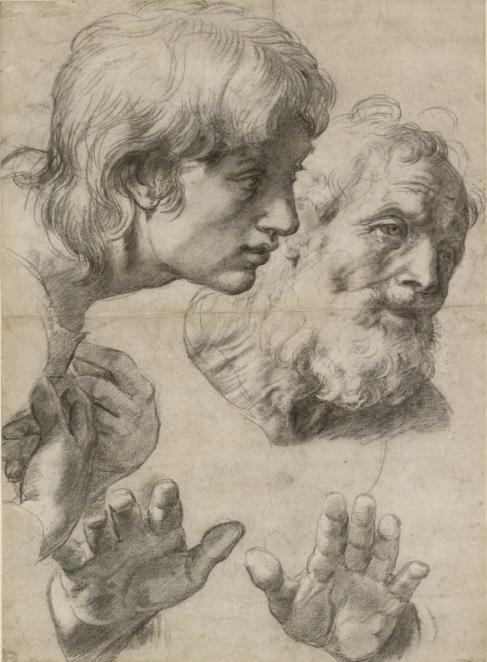Raphael, The Heads and Hands of Two Apostles (ca. 1519-20)