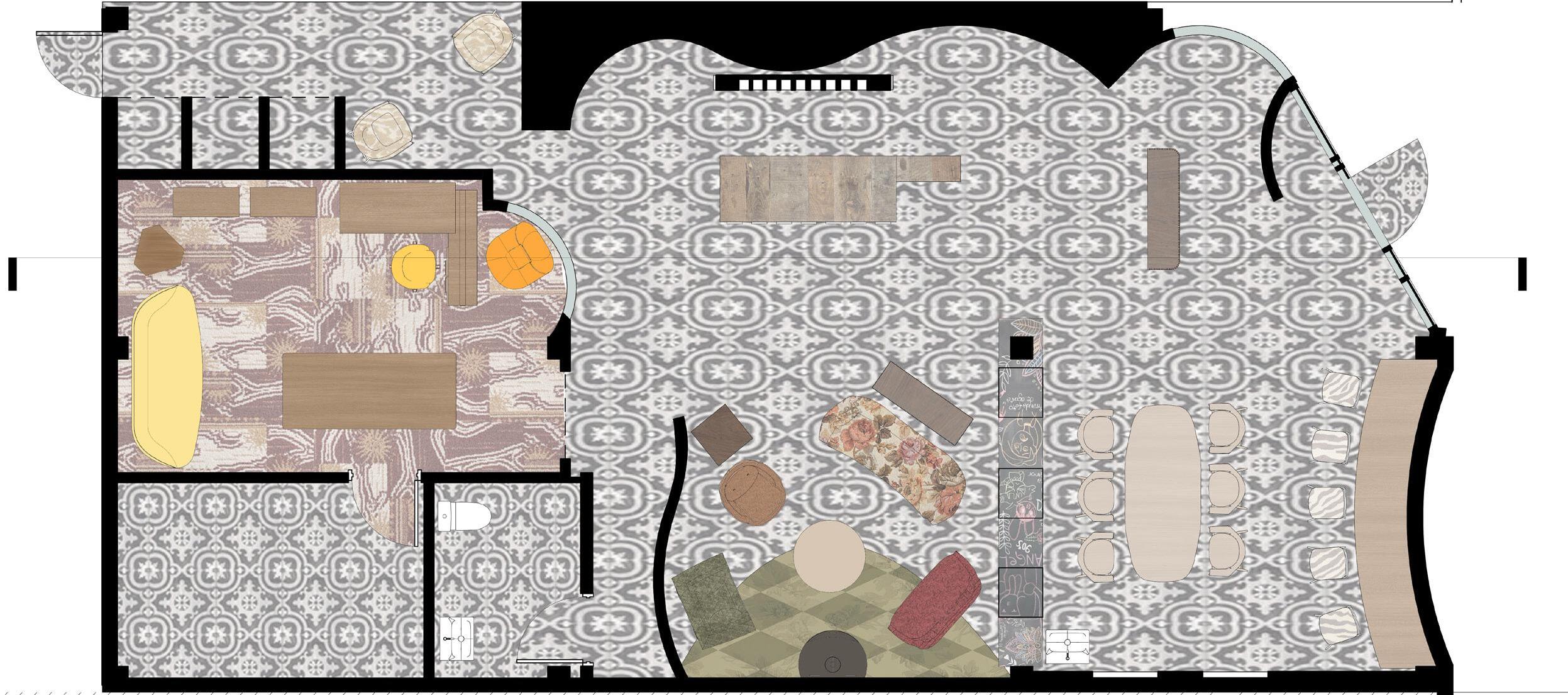 Ruby June is a retail space centered on sustainable fabric and the idea of giving materials a second life. The store brings together new and reclaimed textiles, showing how they can exist side by side rather than being wasted. More than a shop, it’s a place for community, connection, and shared conversations about sustainability. The design features a curved floor plan that creates smooth circulation and guides visitors naturally through the space. A mix of rich textures from worn fabrics to soft new textiles highlights the value and story in every material. Overall, the space is meant to feel welcoming, creative, and inspiring.