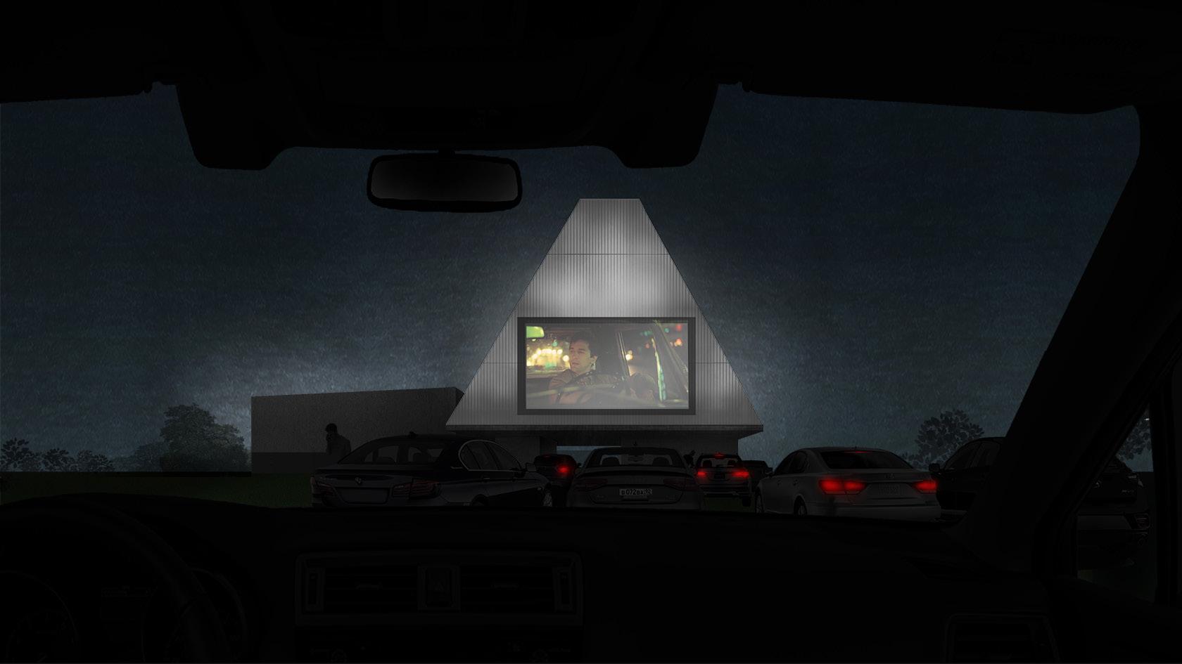 The ensemble is designed with a strong emphasis on vehicular flow and accessibility. The main feature is a drive-through lobby that allows visitors to check in without leaving their cars, enhancing convenience for those on the go. This design also includes a drive-in cinema located on the opposite side of the pyramid, providing a unique leisure experience for travelers.