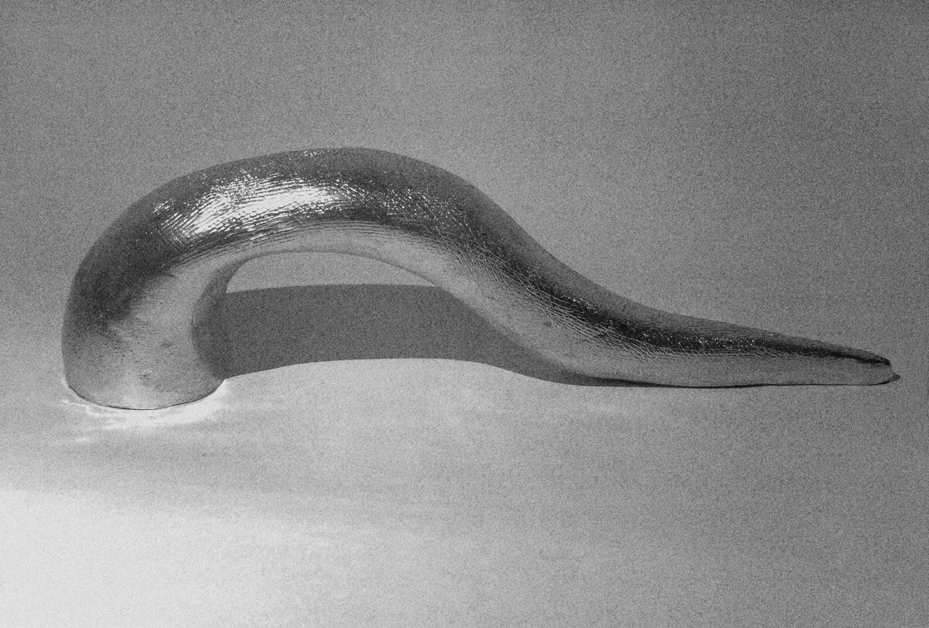 Located on a dividing strip where the roadside space lacks illumination, the sculpture serves a primary function of light dispersion. It acts as a dynamic light source, interacting with the vehicle headlights that cast across its surface. The sculpture’s surface is varied: rough areas on both the exterior and interior are evenly illuminated, while the convex surfaces remain smooth. This interplay of textures and light enhances the sculpture’s form, which is influenced by its physical properties and the perspective from passing vehicles. The model is scaled at 1:25, constructed from clay, and finished with a spray coating.