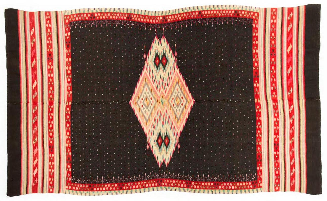Traditions of textile manufacture and design have shown remarkable continuity and resilience throughout the Southwest They are expressions of locally developed weaving traditions that have been shared and borrowed from outside contacts, often through trade or domination, and subsequently adapted to become a unique cultural expressions. This richness is strikingly seen in prehistoric textiles that exhibit a broad range of styles, techniques and materials. This book does not explore prehistoric textiles; that subject has been well covered in works by Lynn S. Teague, PhD and Laurie Webster, PhD, cited in the Bibliography.