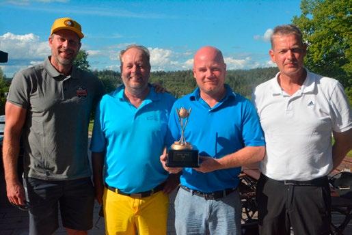 Juhlakisan Scramble-kilpailun voittajaksi pelasi Team Puumerkki, jota kunniakkaasti edustivat entinen ammattilaisjalkapalloilija Juha Reini (vas.), Jari Hurme, Ilkka Silfver ja Pontus Wikström. Kapteeni Reinin mukaan menestyksen avain oli järkkymätön yhteen hiileen puhaltaminen.