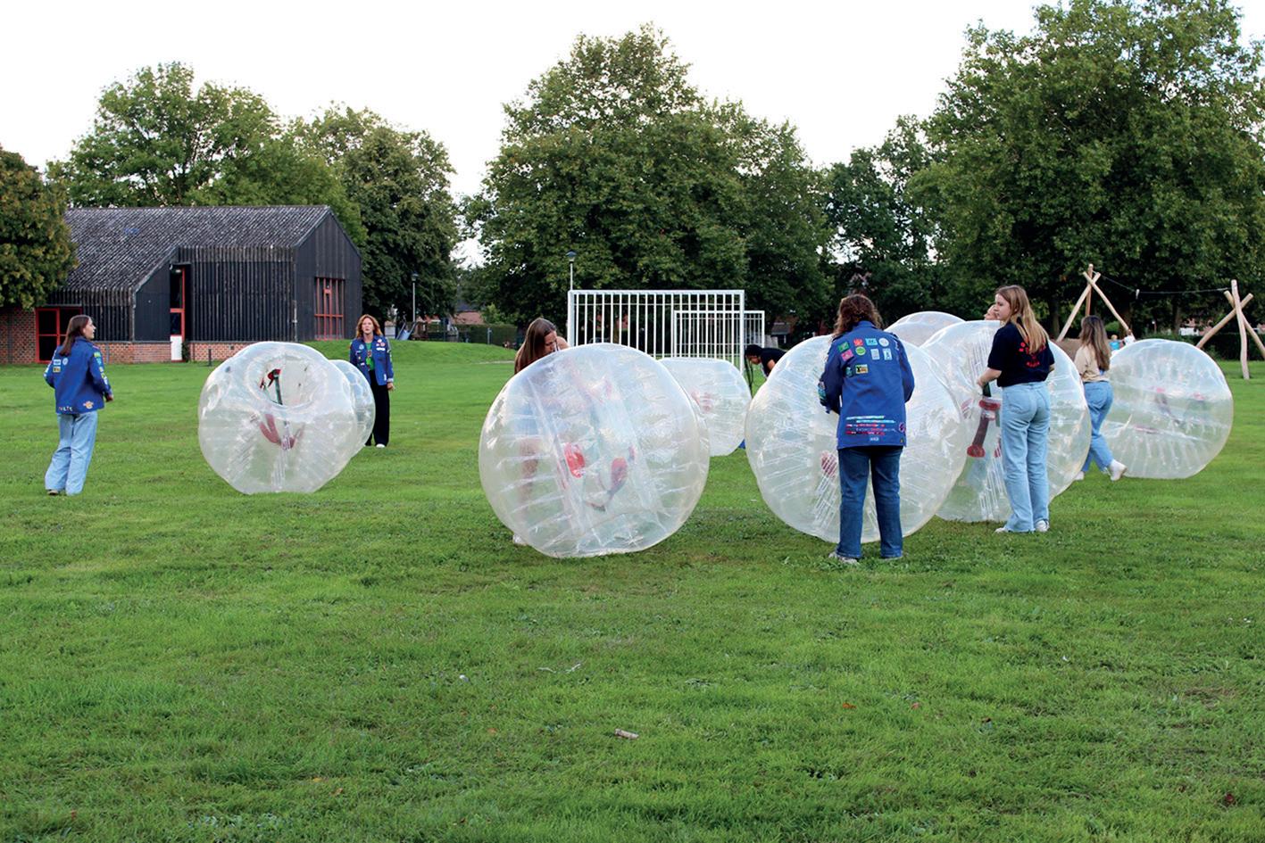 4. Waterballon vullen en gooien naar mekaar. Bij elke gelukte worp doen de spelers een stap achteruit zodat de afstand om te gooien groter wordt. De leiding vormt ook een team en de opdracht is pas geslaagd als de spelers 4 keer winnen van de leiding.