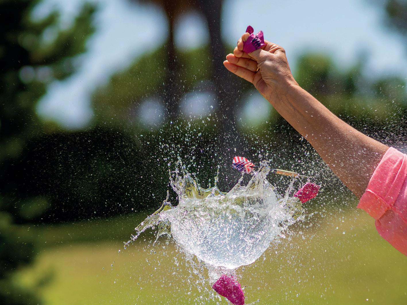 7. Met een waterpistool een waterballon weg spuiten over de eindstreep.