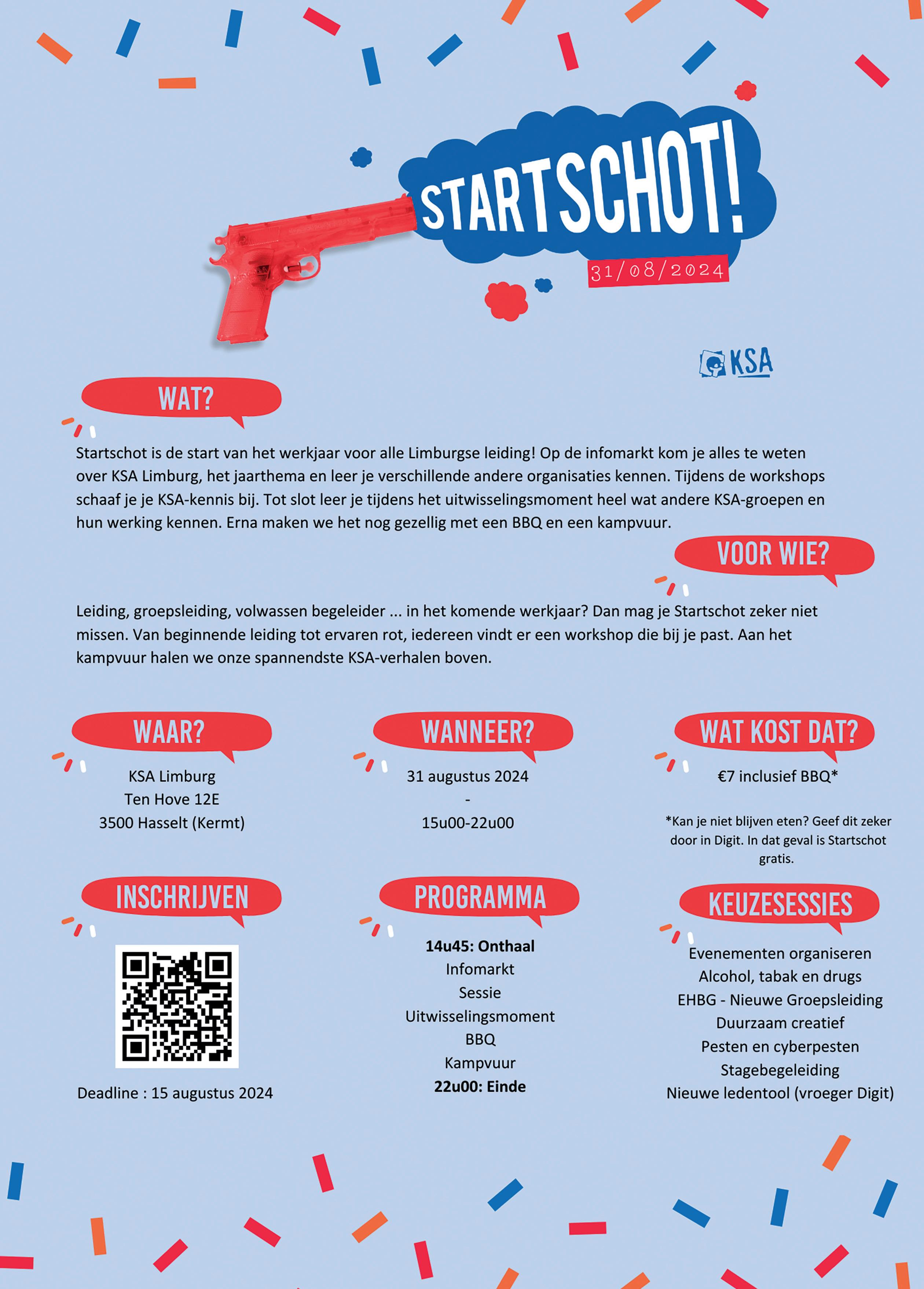 Organiseert je groep een activiteit in de periode september oktober en wil je dit op de kalender van de volgende Kompas zien verschijnen? Stuur dan ten laatste 15 juli 2024 een mailtje met de nodige informatie naar lim@ksa.be.