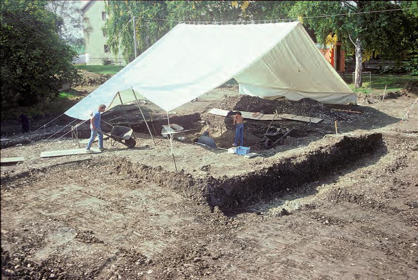 52 Dieses erste von der Grabungsequipe eingerichtete Grabungsnetz der Kampagne 2001 weicht geringfügig vom rechnerisch ermittelten Grabungsraster des Vermessungsbüros Fuchs und Schellinger (Bibern SH) ab, so dass einzelne Befunde der Grabung 2001 nicht ganz exakt lokalisiert sind.