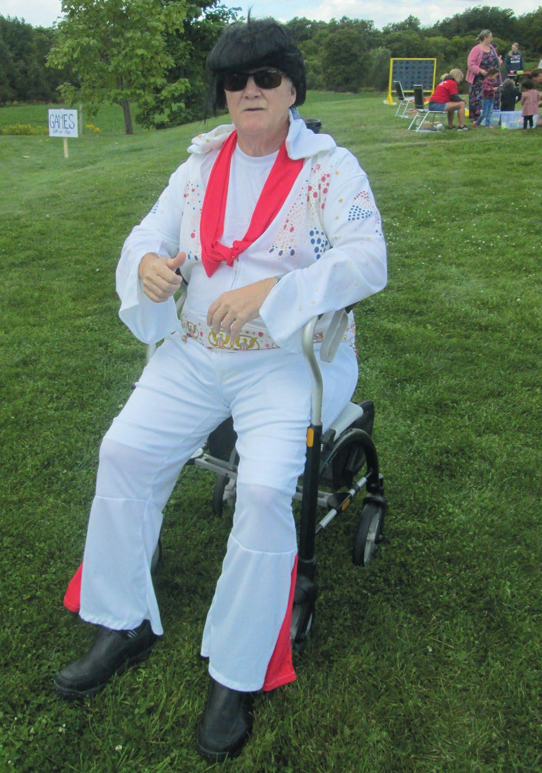CAYUGA—Even Elvis showed up at this year’s Family Fun Day hosted by Cayuga Christian Fellowship. Dwight Forget, the “Man of Many Outfits”, made the trip from Jarvis on Saturday, September 7, 2024 hoping to add a little extra fun to the event for all attendees. Hosted every year at the end of the summer season, the Family Fun Day features a free barbecue, two bouncy castles for the kids, face painting, several lawn games, and a bake sale. This year, there was also an afghan being raffled, with the proceeds directed toward the Special Needs program at Cayuga Secondary School, located directly across Highway 56 from the Cayuga Christian Fellowship building.