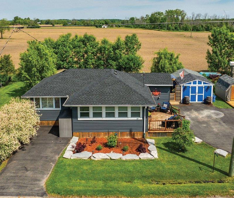 54 RENFIELD ST., PORT COLBORNE. $1,149,000 Custom raised bungalow, 3+1-bdrms, partly fin’d lwr level, 3-bths, mnfl lndry, o/con mnfl, gourmet kitchen w/island, livrm w/gas f/place. Upgrades incl 24”x48” floor tile, hrdwd flrs, quartz, premium appliances, gas f/place, 8 ft patio drs, resort inspired backyard oasis w/tiered deck, pergola, salt-water pool & hot tub. 51’x131’ landscaped lot, desired culde-sac, walking distance to Lake Erie. Mins to downtown, marina, beaches, community centre & canal.