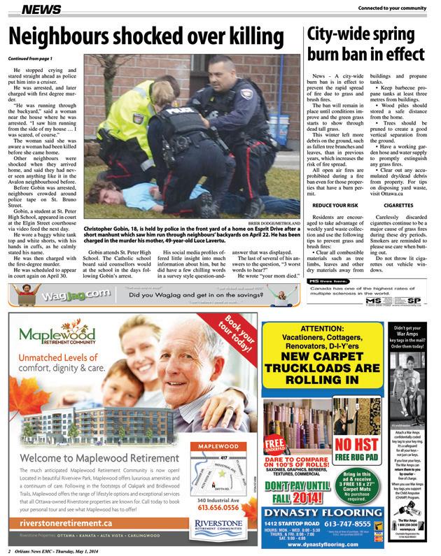 The Valley Gazette of Barry’s Bay is a newsy newspaper, which is why it won first place. One gets the feeling that if anything of significance happens in any of the communities covered, the Gazette will be there to tell the story. Writing, photography, advertising and production values were all strong. The front page is a bit busy – with ads top and bottom, plus a big banner with the newspaper’s name, there isn’t much room for news. Overall a great paper!