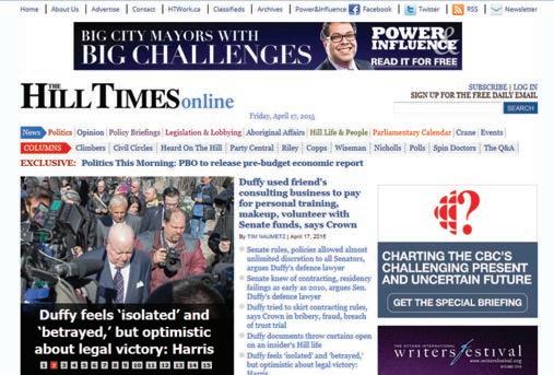 There’s a mix of websites in this category. The best keep it simple and use good journalism and design to attract readers and have interactive tools such as opinion polls to engage them. The weaker sites have some design faults and technical issues and try to do too much. Most have little or no advertising. The winner, the Ottawa Embassy, is clean and bright, simple to navigate and has a nice balance of colour.