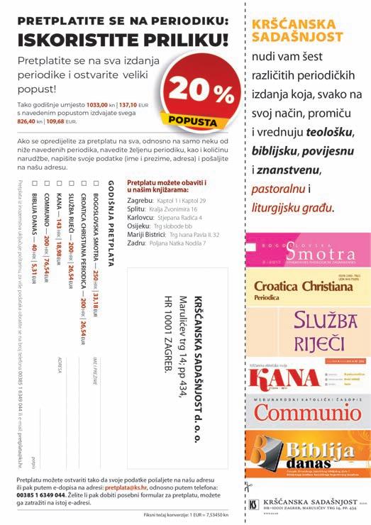 IBAN: HR 1723400091100047241, Privredna banka Zagreb Izdaje: K ršćanska sadašnjost d.o.o., Zagreb, Marulićev trg 14