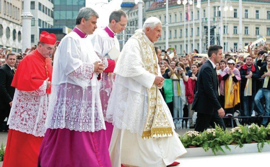 S velikom radošću dolazim među vas kao hodočasnik Isusa Krista. Kako govoriti o Benediktu XVI., a ne spomenuti njegov dolazak u Hrvatsku? O tim blagoslovljenim danima u kojima se jako osjetila Božja prisutnost. Nadam se da nikada nećemo prestati govoriti o pticama koje su se čule na Trgu bana Josipa Jelačića dok je mnoštvo mladih predvođeno Papom klečalo u molitvi pred Euharistijskim Isusom. Niti o dugi koja je zagrlila nebo i zemlju kada je papa Benedikt XVI. odlazio iz Zagreba. Niti o povjetarcu koji se pojavio na sprovodu sv. Ivana Pavla II. Taj sprovod je predvodio budući papa Benedikt XVI. Njegov sprovod je predvodio papa Franjo. I opet se vraćamo na ono čime smo započeli. Na Benedikta XVI. koji je poveznica među njima. I zato onima koji kršćanski dišu i jesu najrječitije fotografije na kojima je Benedikt XVI. u zajedništvu sa sv. Ivanom Pavlom II. ili s papom Franjom. Hvala ti, Bože, što nas voliš. Hvala ti, Bože, što si ljubav prema nama iskazao tako da si nam darovao Benedikta XVI.