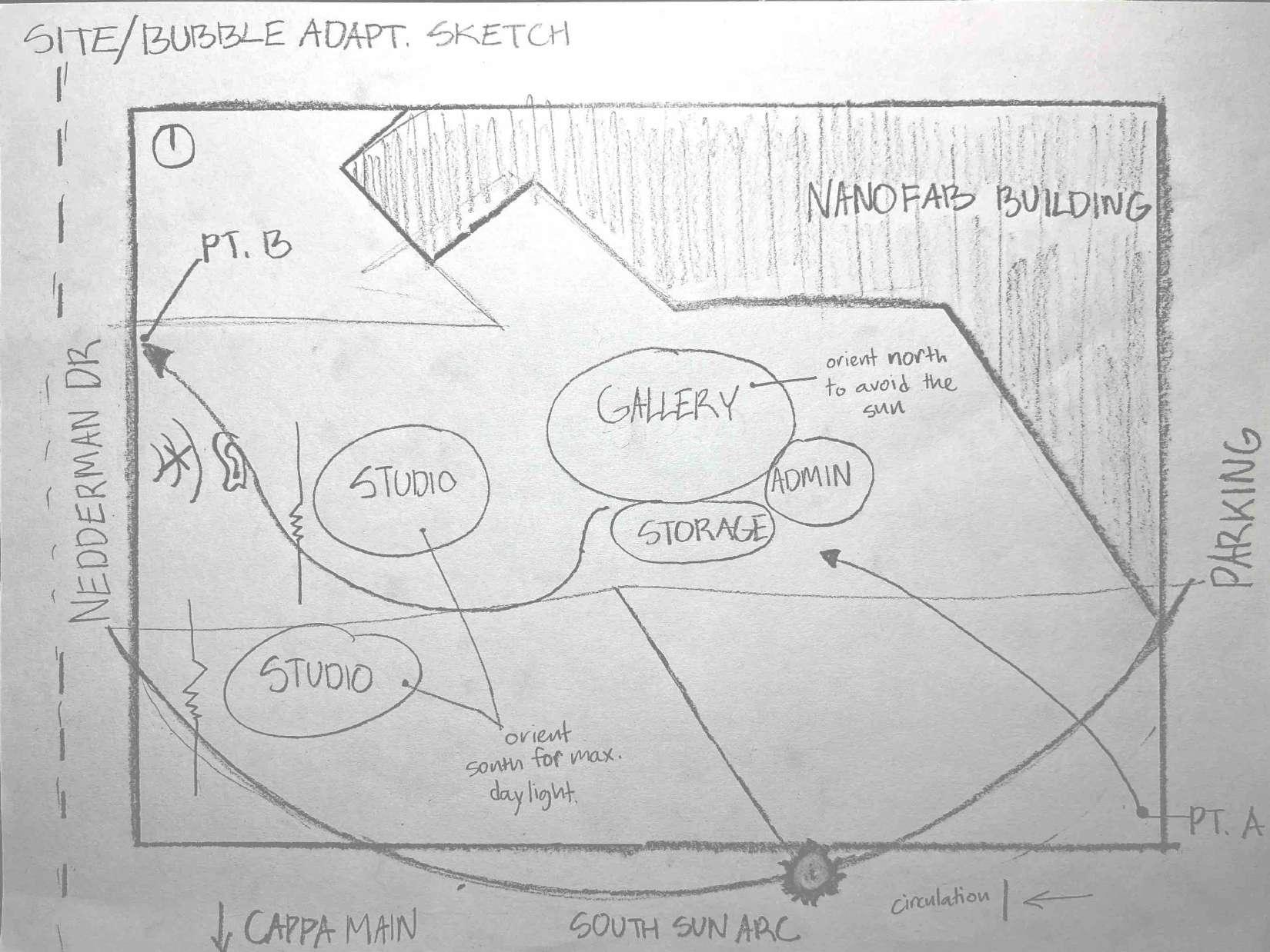 The main spaces provided are two design studios , an interior gallery , and exterior display/gathering spaces.