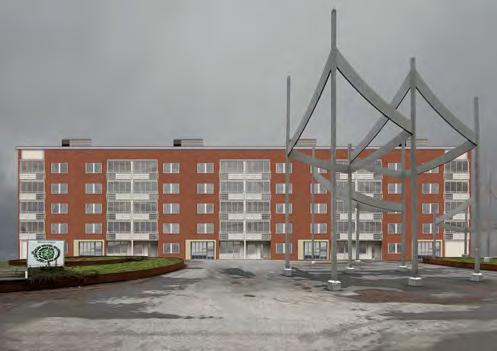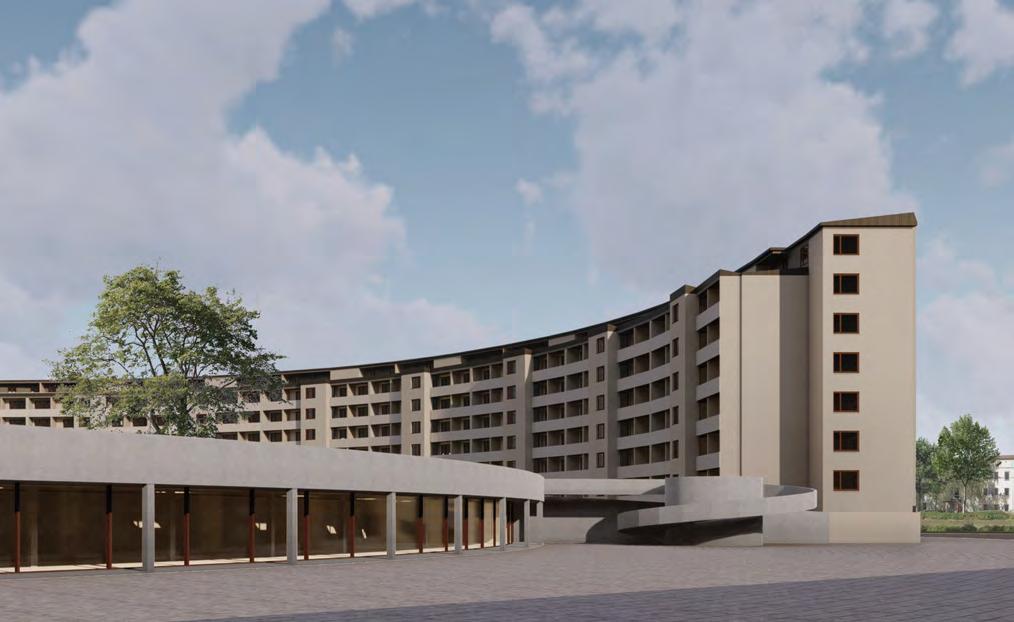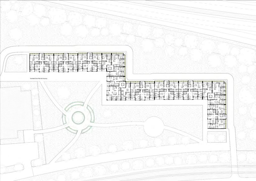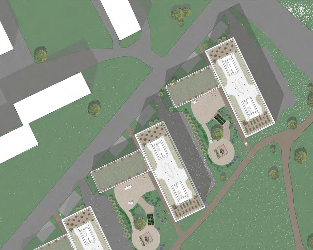 The design of Navestad draws inspiration from the natural surroundings, incorporating them into the layout. The main axis of the plan follows the direction of the road, forming the central line on which the rings are placed. These interconnected rings create a pedestrian and bicycle path that extends from the low-rise buildings in Navestad into the city.