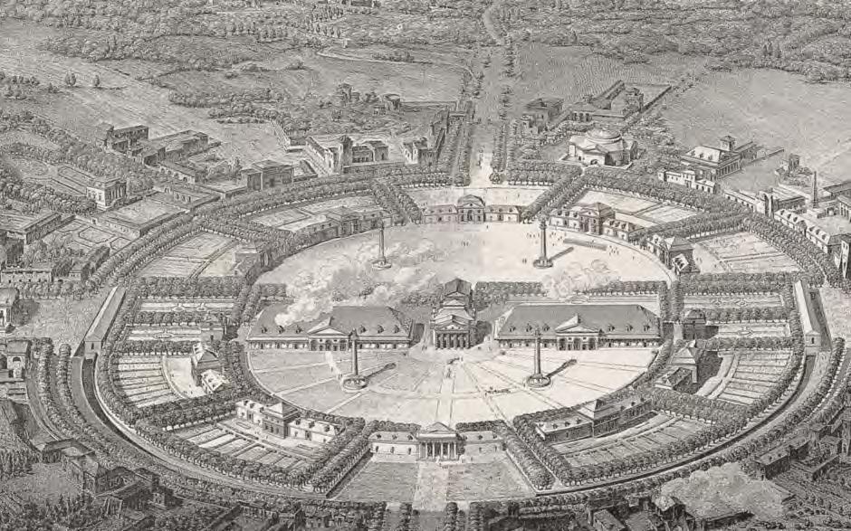 The house of the director, in the very centre of the complex of the Royal Saltworks, allows the monitoring of the workers from the oculus in the tympanum. Anthony Vidler argues that Ledoux was the first to invent the panopticon and thus forgo the famous panopticon of Jeremy Bentham(1791). Indeed, the social implications of the design of the Royal Saltworks, differ little from Michele Foucault’s description of Bentham’s Panopticon in Surveiller et punir. Following Foucault, architecture became a stronger and more organised biopolitical apparatus from the late 18th century with new conceptions of public facilities, hygiene and public order that needed to question the dogma of classicist architecture to impose themselves on society. By dislodging architecture from its traditional values on society and aesthetics, architecture, according to Foucault, started to lose its authority as a symbol to become an apparatus of modernity par excellence.