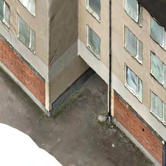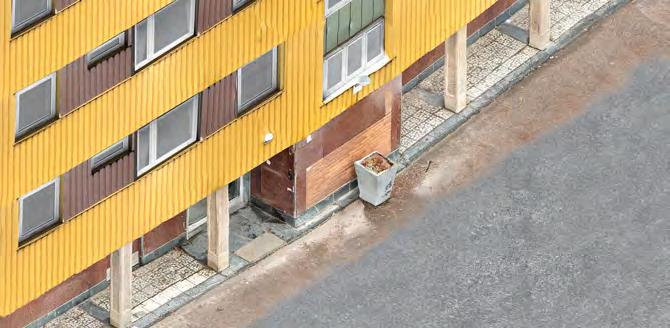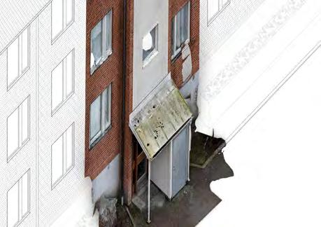 The surface of the original façade was exposed aggregate concrete. However, whilst the balconies were also constructed from concrete, they exhibited a surface treatment that appeared different from the rest of the façade, although no specific information was available regarding this treatment.11 Students from the KTH School of Architecture conducted an investigation focused on the Million Program Concrete project in Norrköping. The investigation shows the attempt of the students to recreate a surface with exposed aggregate. They found out that etching the surface with an acid created an expression that came close to the exposed aggregate surface built in Navestad.