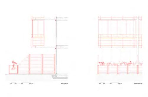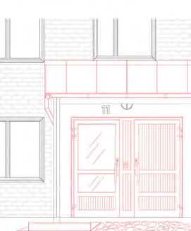During the renovation, the insulation of the façade was improved. Mineral wool was added to the façade and then covered with chicken wire before being rendered. This was a typical way of adding 10-15cm of insulation (we don’t have exact details about the thickness). The tilted balconies -were adjusted to form a right angle and the characteristic ornamented concrete balcony railings were exchanged for a lightweight grey-colored steelglass construction. Moreover, the exposed aggregate concrete on the façade was covered. The preservation of distinct design elements, such as the exposed joints, suggests a deliberate design choice in the renovation process.15