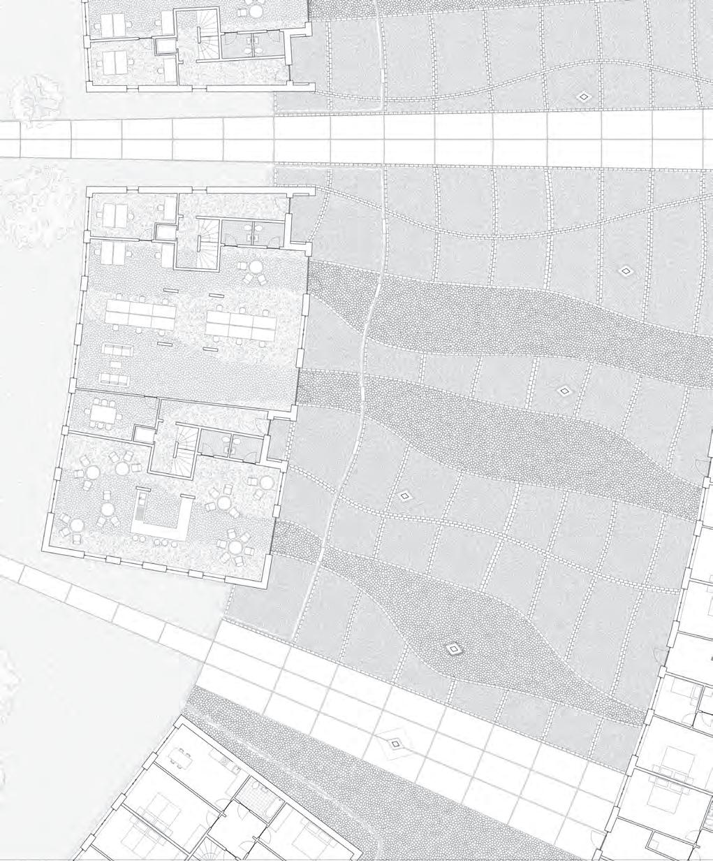 spatial direction within the park, with more vegetation contributing to its distinct character. The intentional contrast in spatial conditions between the two parks informs their design and use. The Silver Ring’s clear directionality and open lawn provide opportunities for various activities and gatherings, while the Golden Ring, with its less defined spatial direction and greater vegetation, creates a more diverse and organic environment.