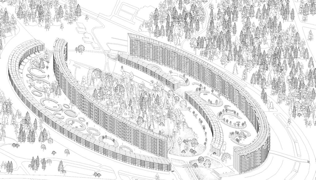 In terms of vehicle access, priority was given to convenient parking spaces near most of the apartments in the outer rings. The inner rings of the residential area were designed to minimize the presence of cars, allowing residents to easily reach their apartments through walkways and cycle paths.