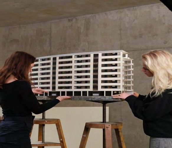 For the joints between the façade and slab, the upper and lower sides of the outer wall and the slab were on the one hand designed so they would lock when they were stacked into each other. On the other hand, the tilted design of the borders in combination with elastic joints ensured the acoustic insulation between the apartments. As the outer walls consisted of 2 concrete layers that sandwiched an insulation layer, the design of the joints also allowed the insulation to breathe. A similar principle applies to the joint between apartment walls and slabs