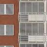 Prefabricated concrete elements, present throughout the entire project They are characterized by their trapezoidal shape in plan, thoughtfully angled in relation to the facade. The railings, supported by a floor plate with two heels, are elegantly fastened to the facade through simple yet effective mechanisms. These balconies feature intricate geometric motifs within the cutouts of the walls, incorporating circles and arches for added visual interest.