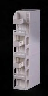 Facade elements as white pilasters adorned with flutes, crafted from concrete with a different grain that sets them apart from the wall elements. Influenced by classicism, these pilasters are strategically placed in a uniform and symmetrical rhythm, maintaining a consistent form throughout the entire premise. While manifesting neoclassical influences, these elements contribute to the project’s aesthetic equilibrium and historical resonance without merely replicating “old” aesthetics. Prefabricated and seamlessly integrated into the walls before the assembly process.